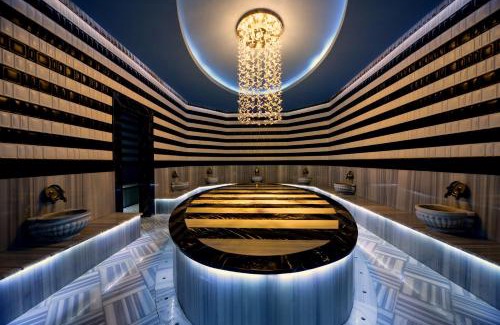 Located at the seafront, the Vikingen Infinity Resort&Spa has a half-mile private beach with a jetty, and free lounge chairs and sun umbrellas. The resort features an outdoor pool, children’s pool, 7 water slides, and spa facilities. Featuring carpeted floors, the rooms at the Vikingen Infinity include a flat-screen TV, air conditioning and a minibar. Each room has a private balcony. Some rooms also offer a spa tub and sea views. The main restaurant has breakfast, lunch and dinner in open buffet style. There are 3 sit-down restaurants serving Ottoman, Italian and Far East cuisine. The bars serve a variety of alcoholic and non-alcoholic drinks. There is also a wine house on site. The spa center includes a Turkish bath, sauna, steam room and a variety of massages including Bali and Thai. A fitness center and a heated indoor pool are also available. Alanya town center is 12 miles from the resort. Antalya Airport is just under 1 mile away.