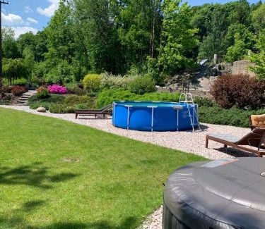Vila Aja offers accommodations in Svoboda nad Úpou, 17 miles from Bus Stop Strážné and 22 miles from The Grandmother's Valley. This property offers a private pool, free Wifi, and free private parking. Guests can make use of the picnic area or the barbecue, or enjoy views of the pool and river. The units come with parquet floors and feature a fully equipped kitchen with a dishwasher, a dining area, a flat-screen TV with satellite channels, and a private bathroom with hot tub and free toiletries. An oven, a microwave, and fridge are also available, as well as a coffee machine and a kettle. At the apartment complex, each unit has bed linen and towels. The area is popular for skiing and cycling, and bike rental is available at the apartment. Outdoor play equipment is also available at Vila Aja, while guests can also relax in the garden. Western City is 22 miles from the accommodation, while Wang Church is 26 miles from the property. Pardubice Airport is 53 miles away.