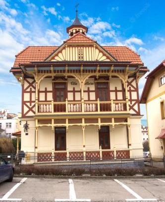 Featuring city views, Vila Bellevue in Luhačovice offers accommodations and a shared lounge. This guest house features free private parking, a shared kitchen, and free Wifi. At the guest house, units include a wardrobe, a flat-screen TV, a private bathroom, bed linen, and towels. At the guest house, every unit includes a seating area. The nearest airport is Piesťany Airport, 43 miles from the guest house.