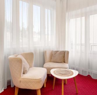 Featuring a garden, Vila Charleston features accommodations in Luhačovice. Featuring garden and city views, this guest house also includes free Wifi. Outdoor seating is also available at the guest house. At the guest house, every unit is fitted with a wardrobe, a TV, a private bathroom, bed linen, and towels. A fridge and kettle are also available. At the guest house, all units are allergy-free and soundproof. A selection of options including fresh pastries, pancakes, and fruit are available for the buffet breakfast.