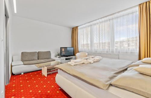 Vila Jiřinka in Luhačovice provides accommodations with a terrace and a shared lounge. This guest house offers free private parking, a shared kitchen, and free Wifi. The accommodation provides airport transfers, while a bicycle rental service is also available. All units come with a seating area, a flat-screen TV with satellite channels, and a private bathroom with free toiletries and walk-in shower. At the guest house, all units are soundproof. At the guest house, the units are equipped with bed linen and towels. Guests at the guest house can enjoy a buffet breakfast, and breakfast in the room is also available. Guests at Vila Jiřinka will be able to enjoy activities in and around Luhačovice, like cycling.