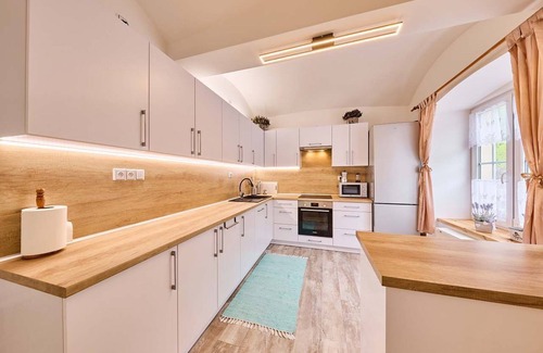 The house has a well-equipped kitchen. If you don't want to spend your holiday cooking, there are local restaurants, bistros and shops within walking distance. Larger supermarkets are within 8 km.