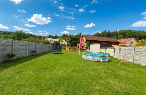 Vila Lumina is located in Svoboda nad Úpou, just 17 miles from Bus Stop Strážné and 21 miles from The Grandmother's Valley. Among the facilities at this property are a shared kitchen and a kids' club, along with free Wifi throughout the property. Outdoor seating is also available at the villa. Offering a terrace and pool views, the spacious villa includes 5 bedrooms, a living room, satellite flat-screen TV, an equipped kitchen, and 4 bathrooms with a bidet and a bath. A private entrance leads guests into the villa, where they can enjoy some wine or champagne and chocolates or cookies. The accommodation is non-smoking. For guests with children, Vila Lumina offers an indoor play area, outdoor play equipment, and a baby safety gate. Guests can swim in the outdoor swimming pool, go skiing or cycling, relax in the garden, and use the barbecue facilities. Western City is 23 miles from the accommodation, while Wang Church is 27 miles away. Pardubice Airport is 53 miles from the property.