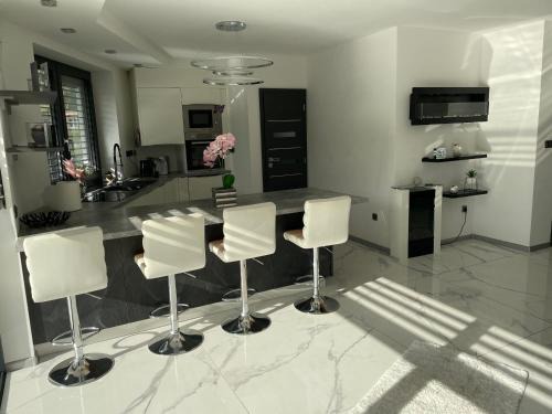 The property is around 16 miles from Strecno Castle, 7 miles from Lietava Castle, and 10 miles from Budatin Castle. The villa also features free Wifi and free private parking. Featuring a terrace and mountain views, the villa includes 2 bedrooms, a living room, flat-screen TV, an equipped kitchen, and 2 bathrooms with a bidet and an a bath or shower. The accommodation has a fireplace. Piesťany Airport is 66 miles from the property.