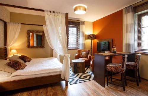 Vila Terra provides a hot spring bath and a hot tub, as well as accommodations with a kitchenette in Luhačovice. The condo hotel offers a spa experience, with its spa facilities, wellness packages, and steam room. There's a sun terrace and guests can access free Wifi and free private parking. The units at the condo hotel come with air conditioning, a seating area, a flat-screen TV with satellite channels, a safety deposit box, and a private bathroom with a shower, bathrobes, and slippers. A fridge, a minibar, and kitchenware are also featured, as well as a coffee machine and a kettle. At the condo hotel, all units include bed linen and towels. A selection of options including fresh pastries, champagne, and pancakes are served for the buffet breakfast. Sightseeing tours are available within a reachable distance. Guests can swim in the indoor pool, go cycling or hiking, or relax in the garden.