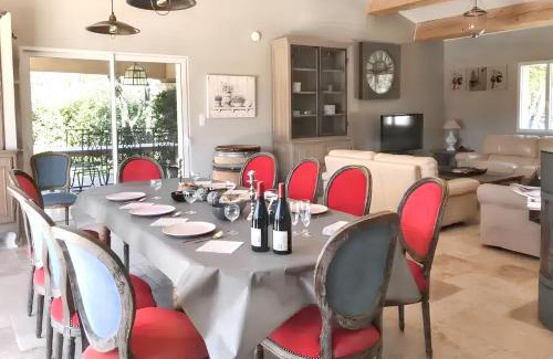 Villa élégante à Régusse avec piscine privée offers accommodations in Régusse, 30 miles from Saint-Endréol Golf Club. Outdoor seating is also available at the villa. The air-conditioned villa is composed of 6 separate bedrooms, a fully equipped kitchen with a dishwasher and a microwave, and 5 bathrooms. A TV with satellite channels is available. There's also a seating area and a fireplace. Toulon - Hyeres Airport is 58 miles from the property.