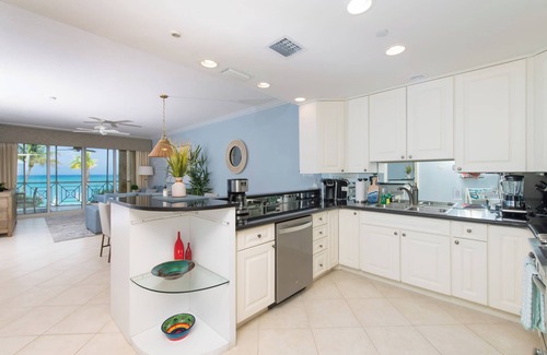 Three bedroom, three bathroom, oceanfront, fully equipped villa (newly refurnished in 2024 by Anna Hislop Home). Enjoy white powder sand beach located right in the middle of Seven Mile Beach. Villa 10 has three king bedrooms; all with attached bathrooms. Each bedroom has 55” smart televisions with a 75” smart television in the living room. Bathrooms supplied with hairdryers, soap, shampoo and conditioner. Master bedroom on the ocean side of villa with beautiful views. Kitchen fully equipped. Housekeeping service available daily (except Sundays, Good Friday, Christmas day, New Year’s day), housekeeping supply dish detergent, paper towels, bathroom tissue and fresh towels. Dining table and lounging chairs on screened-in porch facing the ocean; perfect spot for coffee to start your day and cocktails at sunset. Beautiful dining and lounging areas and four BBQ grills near the pool and beach, all with easy access via elevators or stairs. Fully equipped workout facility. Plenty of shade huts, umbrellas and lounge chairs available on the beach. We supply beach towels. Electrical outlets same as USA and CANADA. Tap water safe to drink throughout the island.