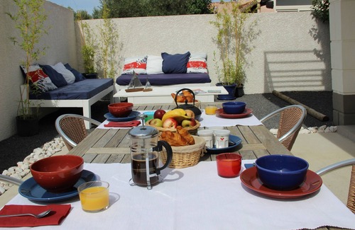 The villa shelters 2 beautiful independent apartments, any comfort, with terraces. Located in the residential area of Grau d'Agde, it is close to shops and 100 meters from the beach. It is installed in an enclosed and landscaped garden. Its location allows you to park your car in the private parking lot. Each 100 square meter apartment is heated and the ground floor is air conditioned. It includes 1 large living room with dining area and fully fitted American kitchen, 2 double bedrooms and 1 bedroom with 2 single beds, 2 shower rooms and separate toilets. Each one has a furnished terrace, the one on the first floor has 1 more balcony. The apartments are equipped with barbecue, television, broadband internet access and wifi, books. You will appreciate the nearby beach. Le Grau d'Agde is a typical and lively fishing port. It offers a family atmosphere with its daily market in summer. The cycle paths allow you pleasant strolls like the one which joins the picturesque city of Agde.