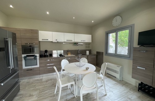 Villa located at the crossroads of the Center of Corsica, 100 m from the RN 197, in a Regional Natural Park with Roman Road, Genoese Bridge, surrounded by mountains and the ASCO needles, bordered by the TARTAGINU river with its plans of water and its rocks. Close (3 kms) to all shops, doctors, pharmacies, dentists, Physiotherapist, Post office, Banks, shops, bars, restaurants, Supermarkets ... Contemporary Villa with a living area of 210 m2 with a very large living / dining room of 70m2, 3 bedrooms: a master bedroom of 22m2 (1 bed 160 and 1 bed 140) with adjoining full bathroom, a 19 m2 triple room (3 single beds) with adjoining full bathroom and a 17m2 triple room (1 double bed and 1 single bed) with independent bathroom. Note that the 2 double sofas in the living room are convertible with a bultex mattress (size 140), fully equipped kitchen, large independent laundry room, various dressing rooms and storage space. A covered terrace of 66m2 equipped with garden furniture for 14 people, barbecue ... The villa is completely fenced, private and secure with a garden fitted with a swing, a swimming pool in addition to the natural water bodies.