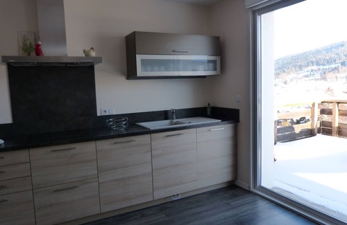 Ground floor: living room with fitted kitchen (oven, dishwasher, microwave, plancha, raclette machine, etc.) giving dining room and second panoramic wooden terrace with view of Gérardmer, the massif and the ski resort . Adjoining lounge with HD TV (197 national and international channels), 5.1 home theater, CD player, DVD, Blue-Ray.