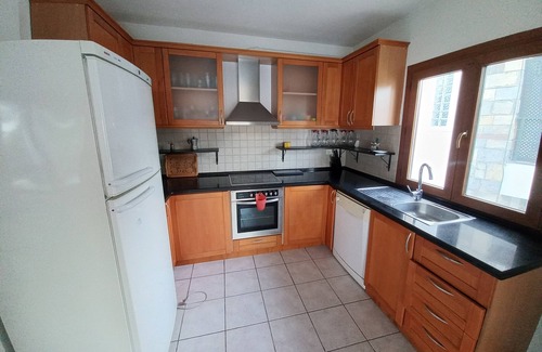 Entry by steps to middle level entrance hall ,WC and cloakroom, lounge complete with DVD player, selection of over 100 DVDs and English satellite channels, open plan kitchen and dining area with patio doors to large covered terrace with seating.