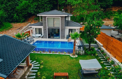 Villa Anıl,Kalkan merkeze yakın noktalarından Kördere mevkisinde 2024 yapımı 3 yatak odası 6 kişi kapasili özel havuzlu lüks tatil villasıdır.Villamızın alt katında kapalı ısıtmalı havuzu,hamam,sauna,oturma alanı,masa tenisi ve langırt bulunmaktadır.Çocuklu aileler için havuza entegre çocuk havuzu olarak kullanılabilecek sığ havuz bulunmaktadır.Kalkan'ın harika şehir ve deniz manzarasına sahip evimiz son derece modern bir mimariye sahip olup üst kalite eşyalarla döşenmiştir.