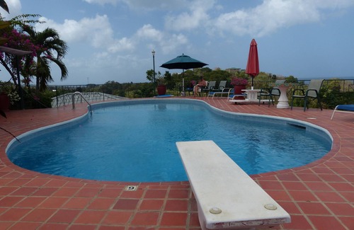 With room to sleep 18, Top O Tobago is ideal for family reunions. It consists of a 3 bedroom house, 3 cabanas (studio apartments), and a large pool on 6 acres of hilly terrain. You can walk to Arnos Vale Beach, one of the island’s best snorkeling beaches, and it is a 25 min. drive to the airport and the many tourist activities on Tobago’s south. Silja, our manager, lives onsite. Since each of the main house and cabanas can be rented separately there is flexibility to accommodate smaller groups.