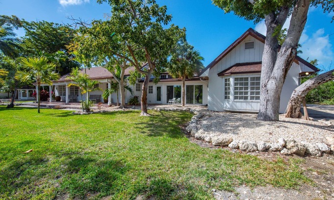 Ready to relax in a fun, secluded environment? These two retreats on the Pelico Palms property are ready to host your next getaway. Hang out by the shared, heated pool, complete with a Tiki hut, an outdoor bar, and a screened-in game room with Ping-Pong and Foosball tables! Cook up something delicious on the private gas grill and then enjoy it on the spacious deck (if you can manage to get out of the relaxing hammock). The villa houses four comfortable bedrooms plus a fun loft, while "the Treehouse" is a lovely two-bedroom space with a queen-size bed. The downstairs bedroom has two twin beds and a private bathroom. No matter where you decide to sleep, you'll be taken care of by central air conditioning and either a kitchenette or access to a full kitchen. The great room in the villa is tastefully decorated and is big enough for everyone to come together and share stories from the day on the sofa. The property truly steps you back in time to the old Florida Keys, with ties to the fabled drug trades of the 1970’s and 1980’s.