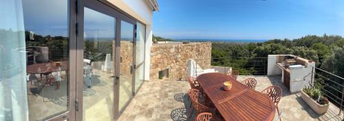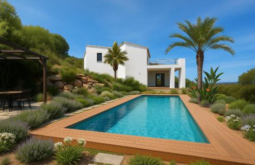 Villa architecte vue mer offers accommodations in Solaro, 30 miles from Porto Vecchio Port. This property offers access to a terrace and free private parking. The villa also offers an outdoor swimming pool and a garden for guests to relax in. The air-conditioned villa consists of 3 bedrooms, a living room, a fully equipped kitchen with a dishwasher and a coffee machine, and 2 bathrooms with a bath. Guests can enjoy a meal on an outdoor dining area while overlooking the sea views. For added privacy, the accommodation features a private entrance. Figari-Sud Corse Airport is 42 miles from the property.