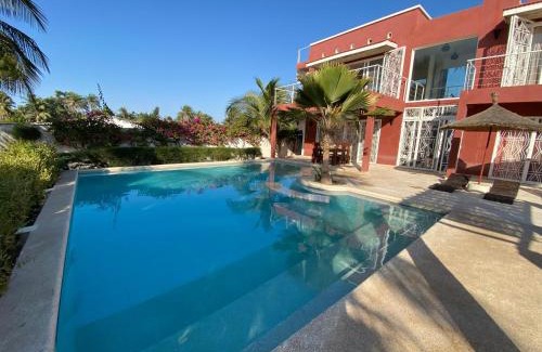 Providing a garden, Villa avec piscine entre plage et Siné Saloum offers accommodations in Palmarin. This beachfront property offers access to a terrace and free private parking. The accommodation provides airport transfers, while a bicycle rental service is also available. The villa includes 4 bedrooms, a fully equipped kitchen with an oven, and a fridge, as well as a coffee machine. Guests can take in the views of the sea from the balcony, which also has outdoor furniture. The property offers pool views. Guests at the villa will be able to enjoy activities in and around Palmarin, like cycling. In addition to a year-round outdoor pool, Villa avec piscine entre plage et Siné Saloum also features kids pool. The nearest airport is Blaize Diagne International Airport, 62 miles from the accommodation.