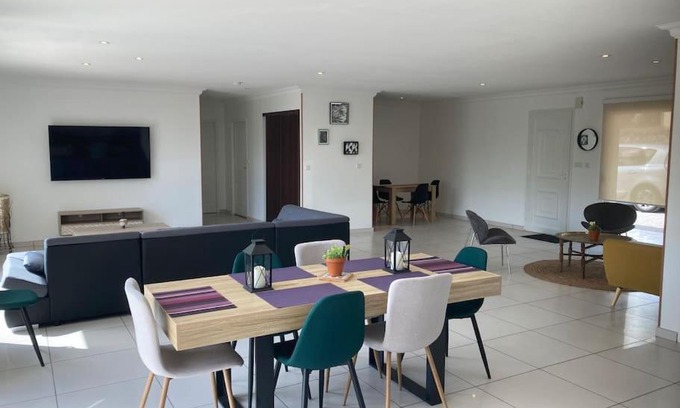 A recently renovated villa, Villa avec son spa privatif proche de Rocamadour offers accommodations in Gramat. This property offers access to a terrace and free private parking. Guests can use a garden. With free Wifi, this 3-bedroom villa provides a flat-screen TV, a washing machine, and a fully equipped kitchen with a dishwasher and oven. The property has an outdoor dining area. Monkey Forest is 6.2 miles from the villa, while Merveilles Cave is 6.6 miles away. The nearest airport is Brive Dordogne Valley Airport, 26 miles from Villa avec son spa privatif proche de Rocamadour.