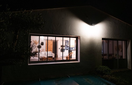 La Villa B est exposée Sud / Sud Ouest et vous permet de bénéficier du soleil tout au long de la journée jusqu'au couché de soleil. Les pièces de vie donnent sur le jardin arboré et sur des pins.