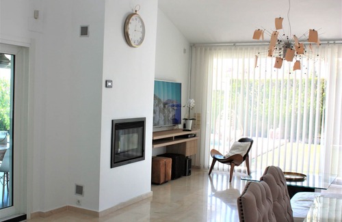 The building has three floors. Ground floor (the entrance is directly from the garage and from the stairs of the middle floor, which leads from the kitchen): garage, laundry room, salon and two bedrooms with bathrooms for each bedroom. The middle floor (there is an entrance to it from the outside and from the stairs of the lower floor, this floor also has access to the courtyard through the salon and through the glazed terrace to the pool, sauna and barbecue area): kitchen, large living room, large terrace covered with glass, guest toilet, one bedroom with its own bathroom and a large dressing room, and two bedrooms and another bathroom. Top floor: Gym with secluded work area.A deposit of 300 euros is taken from guests upon arrival. Heating and use of the sauna 15 euros per hour. From 15/09 to 15/05 for heating the pool (if guests order it) is charged 20 euros per day. Early check-in and late check-out are subject to a fee and are provided only by prior arrangement and subject to availability. We do not provide additional cleaning, laundry or linen change services.All guests over 16 years of age are required to complete mandatory registration before entering the accommodation . A gardener comes to the villa according to his work schedule to service and maintain the quality of water in the pool.