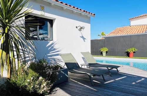 Ideally located, our villa on one level, without vis-à-vis, and completely renovated in 2019, allows you to relax in peace while being close to the port (500m) and the beach (350m). The superb thalassotherapy center Le Richelieu is 350 m from the house for those who want to do some treatments during their stay.