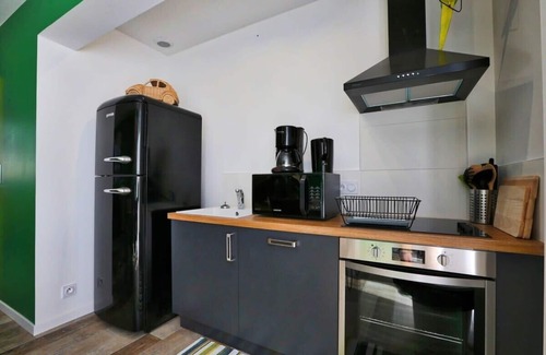 Decorated with a Brazilian theme, this 45m² house can accommodate up to 4 people. It has a living room and a fitted and fully equipped kitchen (oven, fridge-freezer, dishwasher, microwave, oven, filter coffee maker, toaster, Nespresso, kettle, microwave, ceramic hob, all necessary crockery, television (TNT channels), hair dryer, washing machine, iron and ironing board).