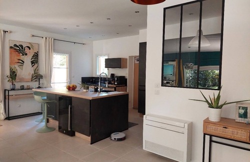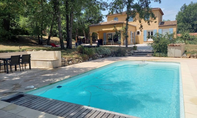 Pleasant villa, for 8 people (170m2), with private swimming pool, in Callian (Var), in an unfenced property of approximately 2500 m2. Quiet, in a dead end. 7 minutes from Saint Cassien lake, 5 minutes from shops. Private swimming pool (exclusive use), 10.00 x 5.00 m, 1.40 m deep, protection system with electric shutters. Air conditioning, electric shutters, wifi. 2 terraces