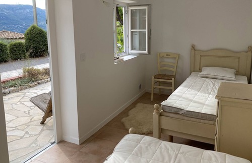 Discover your private mountain paradise just 20 minutes from Nice and conveniently close to the ski slopes. This property comprises three distinct houses. The main house features three bedrooms, a fully equipped kitchen, a cozy fireplace, ample social spaces, and an inviting outdoor terrace. The guest house offers one room with two comfortable 90 cm beds and another room with a single 90 cm bed. The studio includes a double bed and a well-equipped kitchenette. Outdoors, you'll find a refreshing pool, a barbecue area, a relaxing outdoor lounge, a terrace with breathtaking valley views, and even a boule court for your enjoyment.