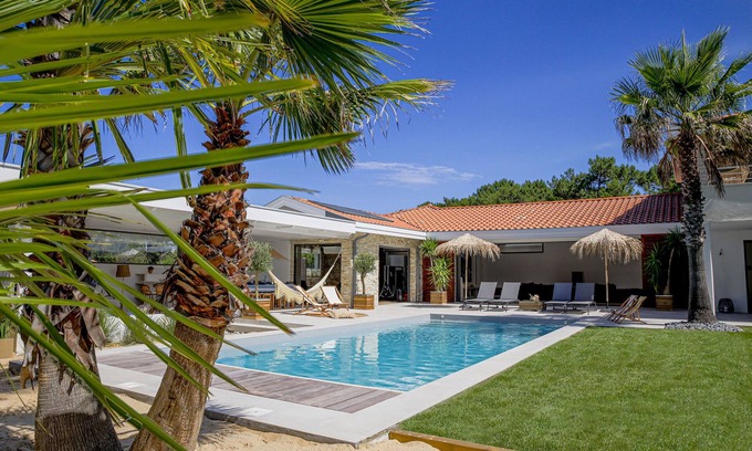 Best-rates for the Vieux-Boucau-les-Bains villa starts from $581 per night with includes TV, Balcony/Terrace, Hot Tub, Laundry, Guest Services, Air Conditioner, Parking, Ocean View, Wellness Facilities, Child Friendly, View, Security/Safety, Fireplace/Heating, Kitchen, Pool, Private Pool, Sports/Activities, Bedding/Linens, Entertainment, Internet StayAndPlay offers fully equipped golf villas, golf hotels, golf resorts, luxury golf cabins, and exclusive golf retreats, making it easier than ever to find your perfect golf escape — ideal for families, peaceful getaways, or pet-friendly retreats with the whole crew.