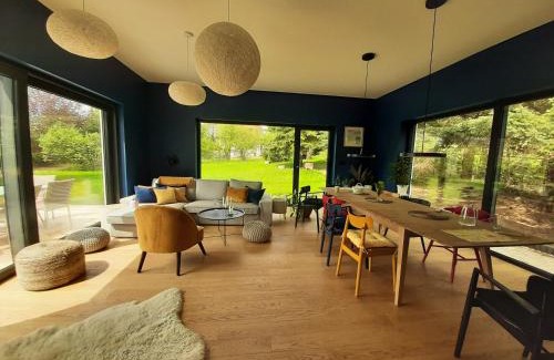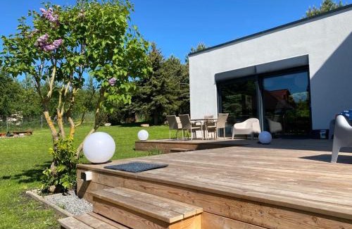 VILLA DANUTA- WISELKA, direct at National Park, big garden, 4 bedrooms, private SAUNA offers accommodations in Wisełka, 1.6 miles from Wiselka Beach and 16 miles from Świnoujście Train Station. This beachfront property offers access to a balcony, free private parking, and free Wifi. Guests also enjoy access to the sauna and spa facilities, as well as the wellness packages and beauty services. Providing a terrace and garden views, the spacious vacation home includes 4 bedrooms, 2 living rooms, cable flat-screen TV, an equipped kitchen, and 5 bathrooms with a walk-in shower and a bath. The parquet floors, fireplace, and peaceful vibe add to the ambience of the room. This vacation home is allergy-free and non-smoking. During warmer months, you can make use of the barbecue facilities and eat on the private patio. For guests with children, the vacation home provides both an indoor and outdoor play area. After a day of snorkeling, diving, or cycling, guests can relax in the garden or the shared lounge area. Zdrojowy Park is 21 miles from VILLA DANUTA- WISELKA, direct at National Park, big garden, 4 bedrooms, private SAUNA, while Baltic Park Molo Aquapark is 21 miles away.