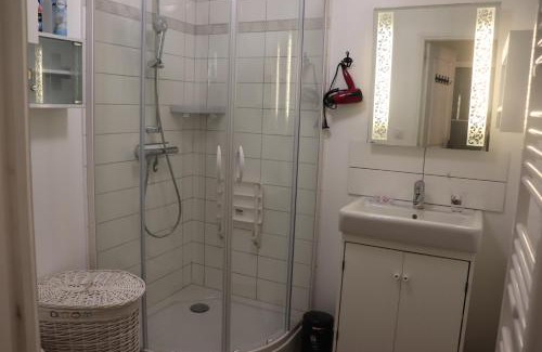 Offering a casino, Villa des sables avec 1 studio pour 2 personnes pouvant être complété par une chambre avec sa salle de bain et WC si 4 personnes provides accommodations in Cabourg. This property offers access to a terrace and free private parking. The accommodation features a shared kitchen and a shared lounge for guests. With free Wifi, this apartment offers a flat-screen TV, a washing machine, and a fully equipped kitchen with a microwave and toaster. Towels and bed linen are featured in the apartment. The property has an outdoor dining area. There is a garden with a barbecue at this property, and guests can go fishing and hiking nearby. Plage de Cabourg is a 6-minute walk from the apartment, while Cabourg Casino is 2.6 miles away. Caen–Carpiquet Airport is 19 miles from the property.