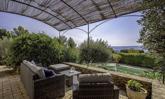 This 2 bedroom villa is a welcoming and elegant home to spend your time in Provence celebrating both indoor and outdoor living, with a beautiful garden and pool framing the view out to the Luberon hills.