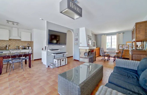 Villa T4 completely redone by an interior designer composed of a beautiful living space with kitchen open to living room (equipped with a large TV) and the dining room.