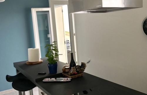 A kitchen in the American style just made, with a central island, fully equipped kitchen, overlooking the terrace of 30 m2, always facing the sea and overlooking the terrace, a barbecue for 9 with plancha, a beautiful and large garden table with 8 comfortable chairs to invite you to have breakfast (what fun!) or have lunch and dinner, after enjoying a beautiful sunset, always renewed! ...