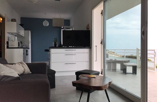 Our strengths: the large terrace with this beautiful panoramic AND the sea there, down, 20 m lower the beach!
