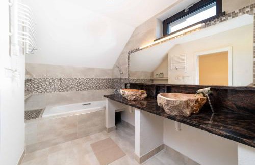 Villa Felicità Pool House is located in Švábovce, just 19 miles from Spis Castle and 19 miles from Dobsinska Ice Cave. With garden views, this accommodation offers a balcony. There's an outdoor fireplace and guests have access to free Wifi, free private parking, and an electric vehicle charging station. Offering a terrace and mountain views, the spacious vacation home includes 6 bedrooms, a living room, flat-screen TV, an equipped kitchen, and 4 bathrooms with a walk-in shower and a bath. Towels and bed linen are offered in the vacation home. There's also a seating area and a fireplace. The vacation home also provides a pool with a view and a spa facilities for guests to relax in. For guests with children, Villa Felicità Pool House features both an indoor and outdoor play area. Guests can enjoy the indoor pool and garden at the accommodation. Strbske Pleso is 23 miles from Villa Felicità Pool House, while Treetop Walk is 29 miles from the property. Poprad-Tatry Airport is 7.5 miles away.