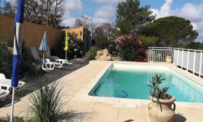 villa with 3 bedrooms bathroom and separate toilet, large TV with all the comfort 1.58 screen, wifi, large corner sofa and equipped kitchen has external Relax under the pergola, with two large tables recevoir10 can people with a small lounge on the side, a barbecue, pizza oven and you, its all located near the house, the pool and located in height with a clear view of the surrounding mountains. It is very nice to relax by taking a cold drink. and there to sunbathe