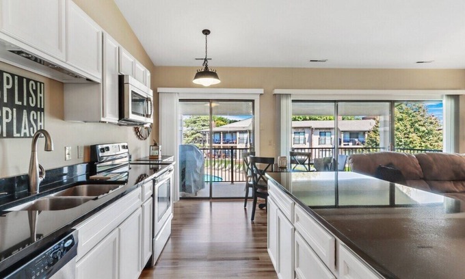 This high-end Abbey Villa has been thoughtfully appointed to provide you with all the comforts of home in a resort-like setting. With the Abbey Hotel being just a quick walk through the harbor, the Villas are an excellent option for families attending weddings or other events at the popular venue. Very close proximity to Fontana's picturesque lakefront, including notable hangouts such as Chuck's, Gordy's, the public beach, and boat/wave runner rentals! Enjoy being at the more peaceful west end of the lake while downtown LG shopping, wining and dining is less than 20 minutes away. Kick back on the spacious balcony and watch the kids play at the pool as you sip your favorite cocktail or enjoy a morning cup of coffee. The open-concept, second-story unit features a large island/breakfast bar that overlooks the entertainment area. A dining table seating six (plus another on the balcony for those nice summer nights!) makes eating in a convenient option. Both bedrooms are spacious, with the master featuring a king and a second bedroom housing two twin bunks. A couple of updated full baths round out the roughly 1,1000sqf condo, making mornings and bedtime a breeze for your group of up to six. Don't miss your chance to see why the Abbey Villas are becoming one of the more sought-after lodging destinations in the Lake Geneva area! **PLEASE NOTE THE POOL IS UNDER CONSTRUCTION AT THIS TIME AND THERE IS A CHANCE FOR INCREASED NOISE**