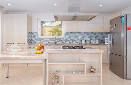 The villa is just a few minutes’ stroll to two popular beach clubs, which offers a variety of water activities, perfect for the young at heart, and an opportunity to swim in the calm warm waters of Kalamar Bay. Ideal for families and larger groups, looking for beautiful places to relax in.