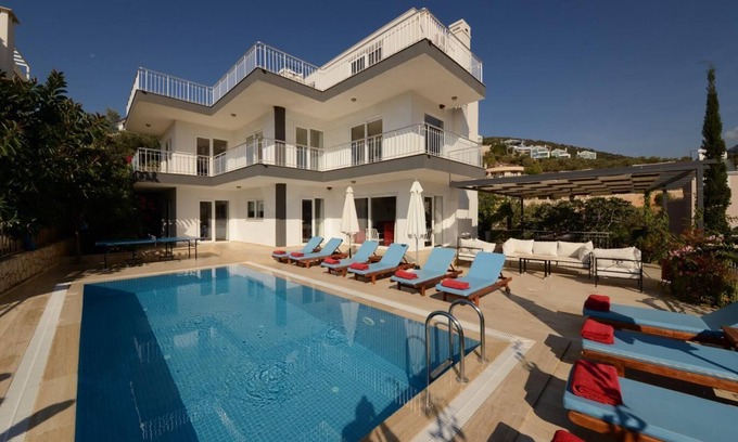 Best-rates for the Kalkan villa starts from $1,643 per night with includes TV, Kitchen, Bedding/Linens, Wellness Facilities, Entertainment, Parking, Pool, Private Pool, Balcony/Terrace, Oceanfront, Air Conditioner, Barbecue/Outdoor Cooking, Child Friendly, Laundry, View, Ocean View, Security/Safety, Internet StayAndPlay offers fully equipped golf villas, golf hotels, golf resorts, luxury golf cabins, and exclusive golf retreats, making it easier than ever to find your perfect golf escape — ideal for families, peaceful getaways, or pet-friendly retreats with the whole crew.