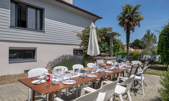 Contact family and friends for a long weekend or well-deserved holidays, and discover southern Brittany and Loire-Atlantique. Drop your bags in La Plaine-sur-Mer, a paradise for food lovers, shore fishermen, water sports enthusiasts, and fans of doing nothing!This villa, called Le Chalet Marylène, is located on an old hillside, only 700 m on foot from the seaside, in the quiet neighbourhood of La Peignère. It can accommodate 14 adults and 1 child.This family house consists, on one level, of an independent kitchen equipped with everything necessary to make you feel at home (induction hobs, fridge-freezer, microwave, oven, dishwasher, Nespresso and Tassimo coffee machines, toaster, kettle, and much more). A dining room, a living room with TV, a laundry room with wine cellar, chest freezer, washing machine and tumble dryer complete the facilities. Two toilets, a shower room and a bedroom (160 bed) complete the ground floor.Upstairs, you will find 4 bedrooms with double beds (140), one of which has bunk beds, 2 bedrooms with single beds (2 x 90), a bathroom, a washroom and an independent toilet.Oriented East-West, the house has a closed and secure garden with multiple spaces. For maximum comfort, garden furniture, a charcoal barbecue and some sun loungers are provided.You will be able to park for free on the hillside, opposite the house.The villa is ideally located in a central area of La Plaine-sur-Mer, close to many points of interest:- 750 m from Port Giraud beach- 800 m on foot from Joalland and la Gravette beaches- 900 m from the first cycle paths of "La Loire à Vélo" and "Vélocéan", connecting Bourgneuf Bay to Mesquer- 1.3 km from the Michelin-starred restaurant "Anne de Bretagne | Mathieu Guibert"- 1.5 km from the shellfish farming area and "Spiruline de Retz"- 1.9 km from the shops in La Plaine-sur-Mer town centre: hypermarket, renowned bakeries, delicatessen, hairdresser, florist, delicatessen, press, restaurants and summer market- 2 km from the "Eole Ranch" equestrian farm and the naturist creeks of la Raitrie- 3 km from the regional reserve of Pointe de Saint-Gildas- 4.5 km from Tharon-Plage, its large summer market, night market, shops, bars and restaurants- 6.8 km from "L'Atelier St Michel Chef Chef et Café"- 8.4 km from the "Golf Bluegreen Pornic" golf course- 11 km from the historic centre of Pornic (shops, markets, craftsmen and faience)- 13 km from the Pornic Ria (garden and casino) and Pornic SNCF station- 15 km from the Alliance Pornic Resort Thalasso & Spa- 20 km from the largest quad circuit in the region "Quad St Brévin" and the Saint-Nazaire bridge- 55 km from Nantes Atlantique airportThis small seaside town is located in the heart of the Jade Coast. A true haven of peace between sea and countryside, it is full of a significant landscape diversity: a lively and attractive seafront, a peaceful countryside, a pleasant and developed town centre. Between two water-based activities, you can take a whole network of coastal paths to follow the coastline and discover the famous fishing ponds. Do not leave without having tasted the local specialities such as the famous La Plaine-sur-Mer mussels, the ice creams and jams from "La Fraiseraie", the delicious St-Michel pancakes, without forgetting – hot or cold – the tasty Curé Nantais.This furnished tourist accommodation has an internet connection.The house is not accessible to people with reduced mobility.Our animal friends are not accepted in this rental.The tourist tax is added to the rental amount and must be paid in advance of your stay.REF: hoomy12479
