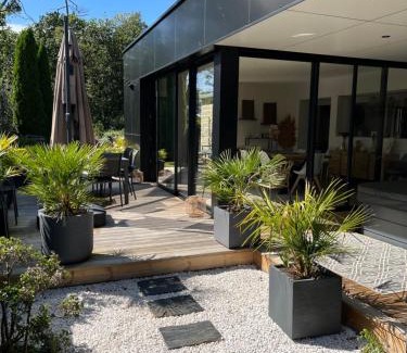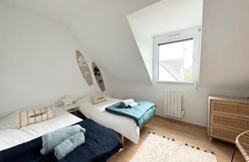 A 15-minute walk from Plage de Kermor in Combrit, Villa H ste Marine offers accommodations with access to a hot tub and spa facilities. This vacation home provides free private parking, a shared kitchen, and free Wifi. The accommodation features a concierge service and a shared lounge for guests. Providing a terrace and garden views, the spacious vacation home includes 4 bedrooms, a living room, flat-screen TV, an equipped kitchen, and 2 bathrooms with a walk-in shower and a hot tub. Towels and bed linen are provided in the vacation home. The property has an outdoor dining area. Guests at the vacation home can enjoy hiking nearby, or make the most of the garden. Quimper Train Station is 13 miles from Villa H ste Marine, while Departmental Breton Museum is 13 miles away.