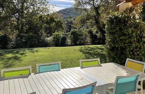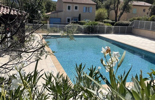 Villa située dans une rue sense unique, très calme, en face de la grande piscine. Badge pour accès à la piscine réservée uniquement aux résidents de la rue, se trouve dans la maison. Jardin privatif clôturé et sans vis-à-vis.