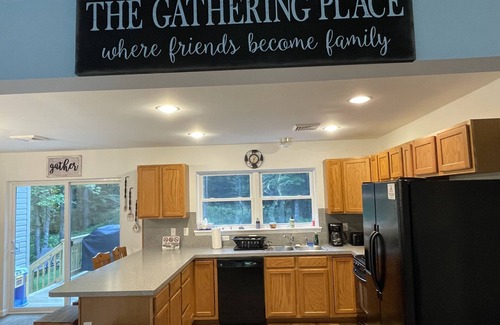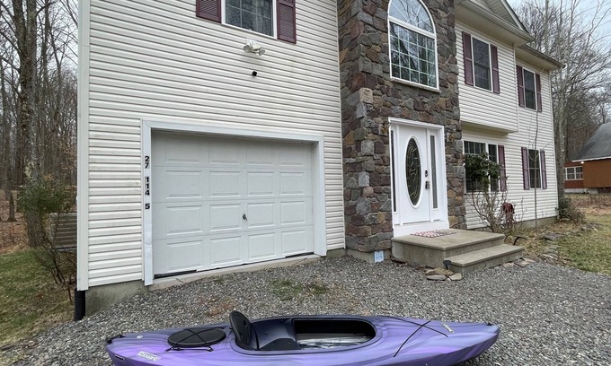 The house in the heart of the Poconos. Year-round rental in Arrowhead Lake Resort Community. A beautiful two story home with a fireplace. Very spacious for large families or big groups. The house features . The master bedroom comes with its own bathroom and jacuzzi. Adults and kids will enjoy the game room with a pool table. The home stays in the 1 acre property with a forest at the backyard. Getaway and Stay in the Gold-Star Gated Resort Community of Arrowhead Lake! You can walk to the lake, playground, picnic area.