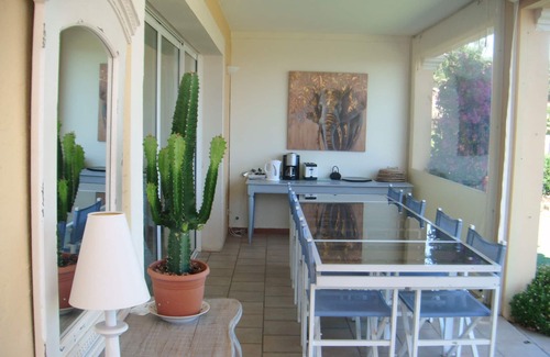 - On the floor terrace tropezienne full sky, beautiful views of the sea and golf.