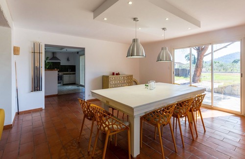 The interior is extremely well arranged so that you immediately feel at home and comfortable with all the rooms on one level, the open kitchen which opens onto the living and dining room, the bedrooms, the 2 bathrooms, bath, and 2 separate toilets. The terrace constitutes a real living space with the terrace and its teak furniture, the barbecue, and the bar. Villa La Navarre is nestled between vineyards & olive trees at the foot of the massifs which constitute an ideal terrain for joggers, cyclists, and hikers without being disturbed by cars therefore in complete tranquillity. The automatic gate gives you access to the land with ample room to park around ten cars. The dining table transforms into a pool table, all openings are equipped with mosquito nets and when leaving you just have to close all the electric shutters. An above-ground swimming pool, a pétanque & and football pitch, and a ping pong table are available. With Belvilla, an unforgettable holiday is guaranteed. We offer a wide range of unique holiday homes that will make your summer holiday, weekend getaway or skiing holiday extra special. Our range includes more than 40,000 holiday homes in 20 European countries. Whether you are looking for an authentic country house with pool in France, a charming house in Tuscany or a cosy chalet in the Alps - with us you will find the perfect accommodation for your family, as a couple or large group. Our holiday homes are located in beautiful places, be it on the coast, high in the mountains or in the middle of the city. Each house is unique and reflects the regional characteristics. At Belvilla you enjoy absolute freedom and privacy. You can have breakfast in your pyjamas or talk undisturbed in the evening without having to worry about curfew. In your own holiday home you can prepare delicious meals with local ingredients or take a relaxing break at any time. You stay among locals and experience the authentic atmosphere of the region first hand. Our homeowners or managers are discreetly available on site and will be happy to give you valuable insider tips about the area. At Belvilla, we are constantly on the lookout for new homes and destinations that meet the wishes of our guests. Book your holiday today and we will ensure an unforgettable stay in one of our unique holiday homes.