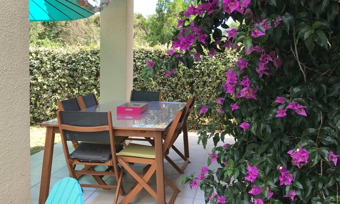 The condominium residence offers a large swimming pool with deckchairs and parasols (open from May to September) and 2 tennis courts. The house can accommodate up to 8 people, with a private, fully fenced garden and a shaded terrace with garden furniture.