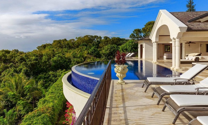 Kailani, a 5 bedroom luxury ridge-front property on the West Coast of Barbados. With breathtaking panoramic sea views, the property exudes Caribbean luxury and elegance. Encapsulating indoor-outdoor living at its finest there are open plan living spaces, a vast covered terrace, glass doors and neutral high-quality finishes. The private villa includes a large infinity-edge pool, alfresco dining and bar, hot tub gazebo, BBQ grill with informal dining, modern kitchen, TV room, office, games room and gym.