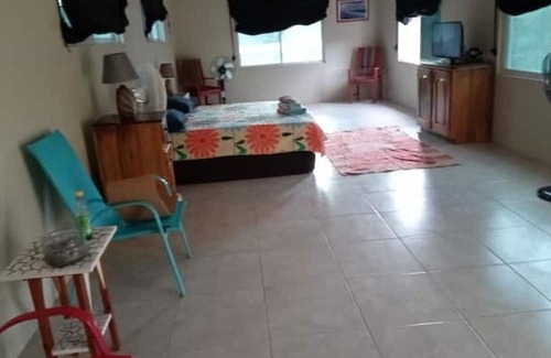 Upstairs is a very large bedroom with King size bed and balcony overlooking the garden, downstairs large living/dining/kitchen area and 2 showers room. Peaceful large garden with Mango, Pear and Passion fruit trees. 5mn walking distance to the cliffs, some local mini marts, restaurants, bars, where you can watch the sunset.