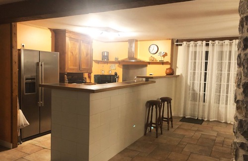 The gite is independent, spacious and very well equipped, washing machine, dishwasher, American fridge