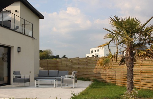 Located in a quiet area with a superb view of the island of Groix, this villa will seduce you with its modern functional and warm